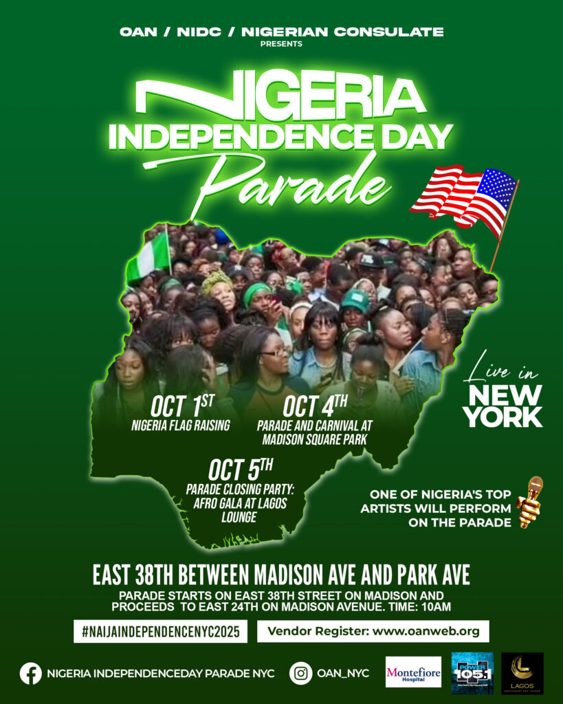 Join us in the heart of New York City for the vibrant Nigerian Cultural Parade, organized by the OAN (Organization for the Advancement of Nigerians). Celebrate the remarkable journey of Niger and embrace our rich heritage. Immerse yourself in cultural festivities, mesmerizing music, captivating dance performances, and indulge in delicious Nigerian cuisine. Mark your calendars and be part of this unforgettable celebration of Niger’s 64th Independence Day. Don’t miss out on this opportunity to honor our past and embrace our vibrant future. Register now and join us on October 5th at 10 am for a joyous and memorable experience. Together, let’s make history.
